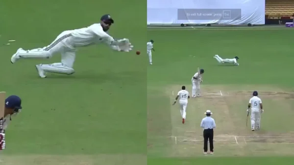 The ball flew past the wicketkeeper, but Pant immediately dived to his left and grabbed it with both hands to make it safe. While going down, he ensured the ball sat well in his hands and didn’t pop out of his gloves, completing a neat catch.