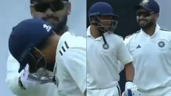 Wicketkeeper batter Rishabh Pant was seen pulling the leg of star spinner Kuldeep Yadav, who was seen on-air during the ongoing Duleep Trophy 2024 fixture between India A and India B taking place at M. Chinnaswamy Cricket Stadium on September 7. When Kuldeep Yadav came out to bat, Rishabh Pant hilariously looked to block Yadav’s way by putting his finger in the helmet. This was then followed up by the 26-year-old cricketer looking to twist Kuldeep’s hand as well in a playful gesture.
