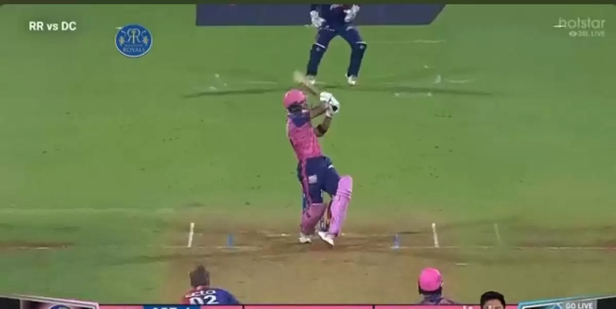 Riyan Parag played a fantastic hook shot off Anrich Nortje to leave even the explosive Rishabh Pant in awe.