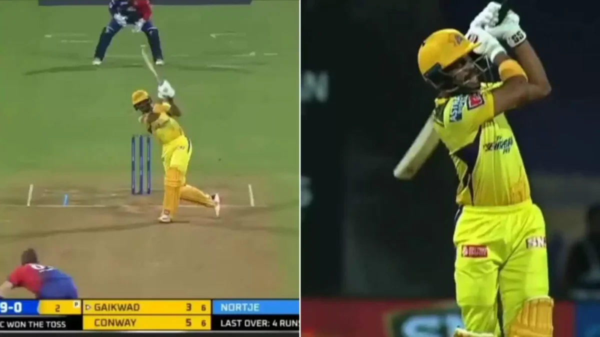 WATCH: Ruturaj Gaikwad steps out to smash Nortje’s 144kph first delivery in CSK vs DC game for stunning six