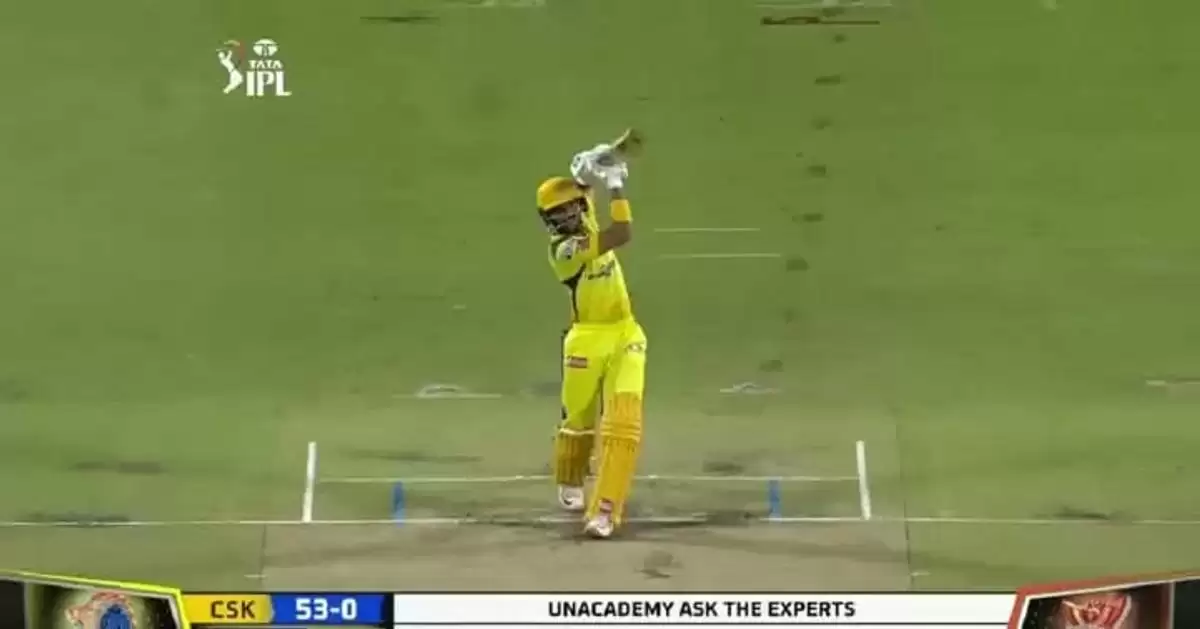 Ruturaj Gaikwad smashed SRH speedster Umran Malik for a brilliant six down the ground.