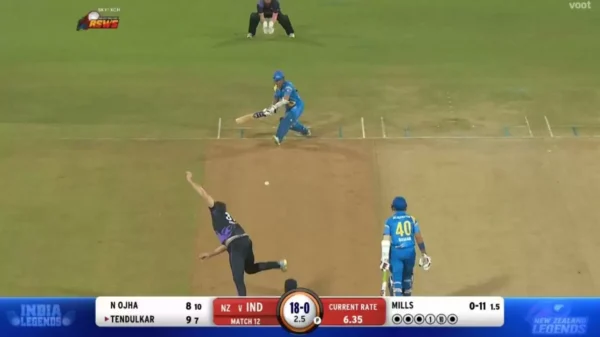 One of these fours was an outrageous ramp shot, which went sailing towards the backward square leg region, almost hitting on the boundary line on the full for a maximum. The shot not only reinforced Tendulkar’s great timing but also his child-like enthusiasm for the game, as the 49-year-old didn’t at any stage of his innings gave the impression he has been a retired cricketer for nearly eight years now.