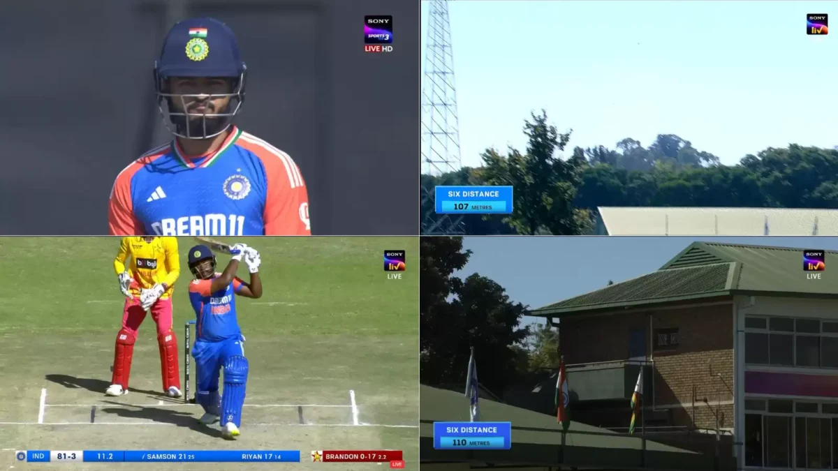 During the ongoing fifth and final T20I between India and Zimbabwe, India batters Riyan Parag and Sanju Samson unleashed their carnage with gigantic sixes that went all the way to the roof of the stadium.