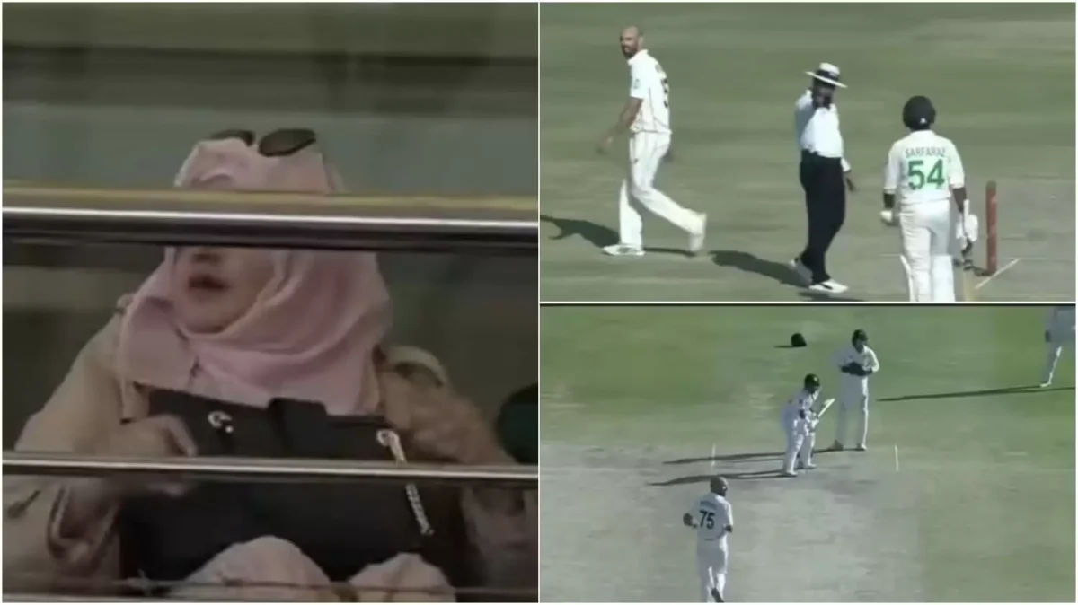 The wicketkeeper-batter, who was already standing way outside the pitch towards the on-side, was seen staring at the giant screen placed at the stadium and turned around after umpire Aleem Dar had a quick word with, while Mitchell stopped on his way from delivering the ball to Sarfaraz’s batting partner Saud Shakeel.