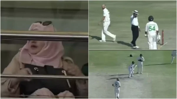 It wasn’t initially known what the player was looking at. However, as it turned out, it was actually his wife whom Sarfaraz Ahmed was staring at from far in the middle of the ground.