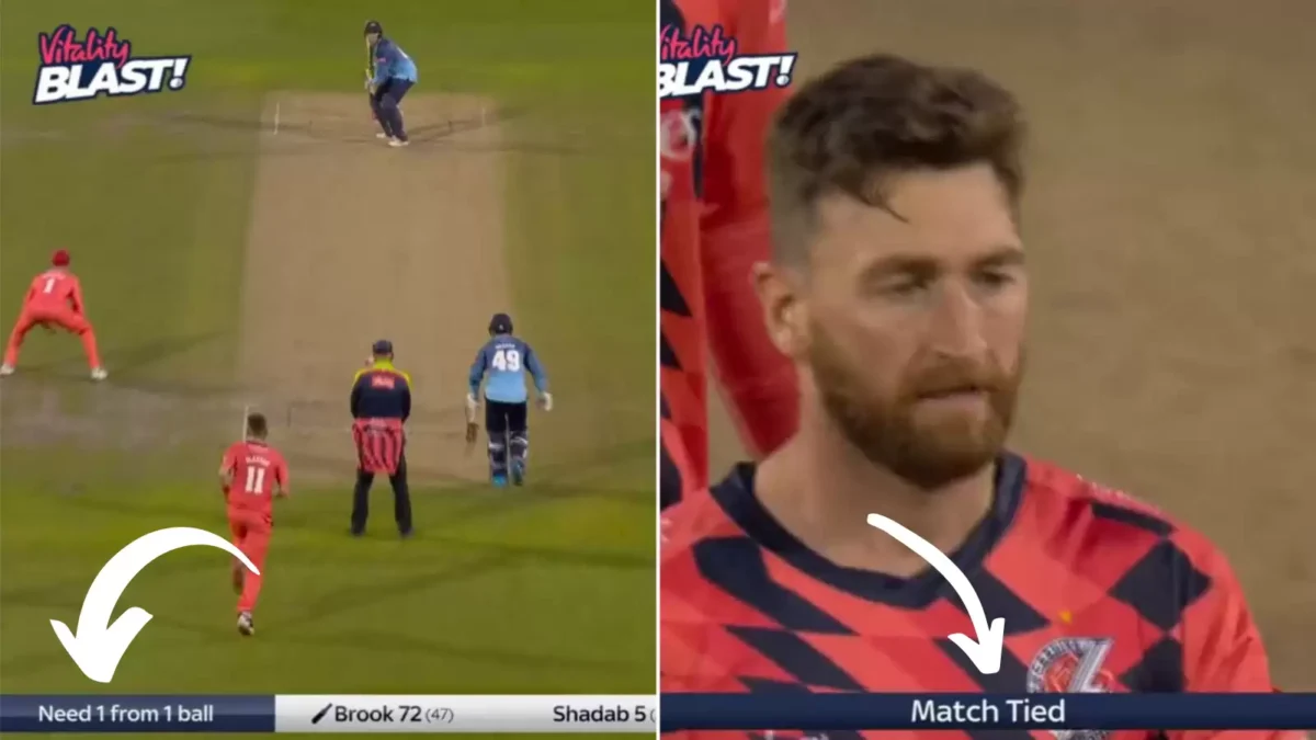 Lancashire and Yorkshire played out a thrilling tie in the North Group encounter played at the Old Trafford in Manchester on Friday (May 27). Yorkshire seemed to ace the 184-run chase right through their innings but Lancashire made a stunning comeback, especially in the last couple of overs and an arguable umpiring decision also went their way off the final ball leading to a tie.