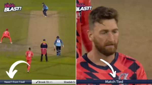 Yorkshire were still the favourites to win as they had six wickets in hand. Richard Gleeson was handed the responsibility to defend but Shadab Khan churned out a four at a crucial juncture and Brook scored two runs off the penultimate delivery which meant they needed one run off the final ball.