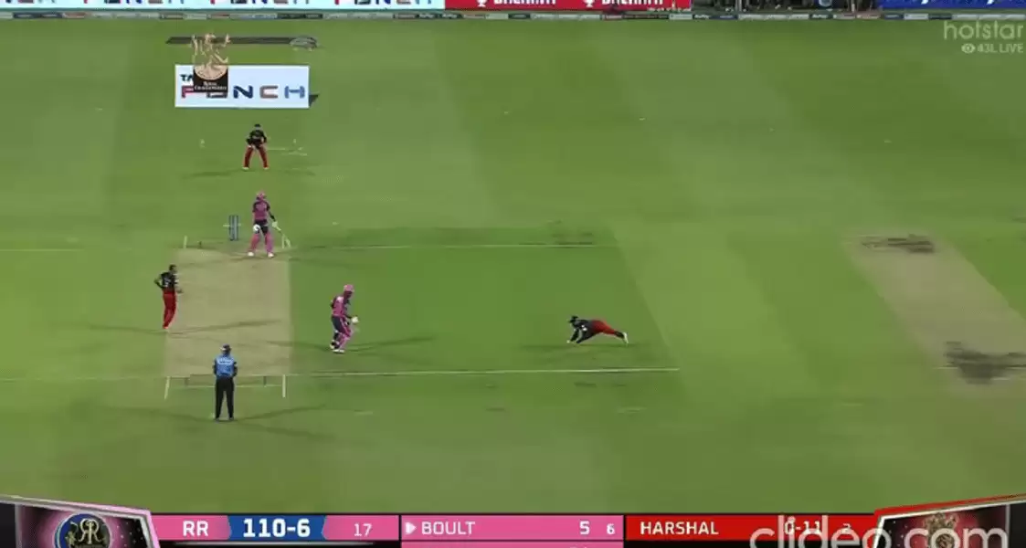 The catch was for a miscued heave off the bat of RR’s tailend batter Trent Boult, but the quality of the grab from Virat Kohli was fantastic as he dived to his left and snaffled it without much fuss. It was a reflex catch from the close-in fielder, one that reflected his solid game awareness and the quickness of his eyes.