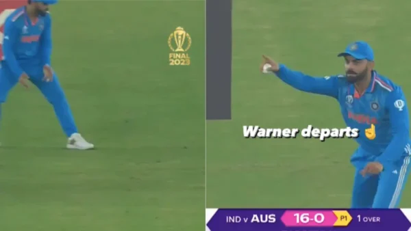 However, Virat Kohli made amends with a breathtaking catch in the same innings. Mohammed Shami, introduced as a surprise move by India, induced an edge from Warner. This time, Kohli, positioned at slip, made no mistake as he leaped to his right and seamlessly plucked the ball out of thin air. The stadium erupted in cheers as Kohli redeemed himself in a spectacular manner.