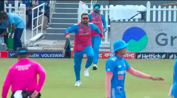 Immediately after the second wicket fell, Kohli, who was rested for the match, came running onto the field in a funny manner to provide drinks to his teammates.