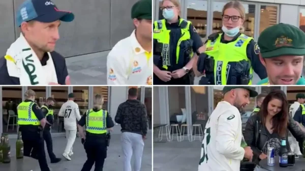 The ECB are reportedly launching an investigation into the episode. According to the ECB statement, “During the early hours of Monday morning, members of the England and Australia men’s teams shared a drink in the team areas of the hotel in Hobart. The hotel management received a noise complaint by a hotel guest, and as is commonplace in Australia, the local police attended the scene.”