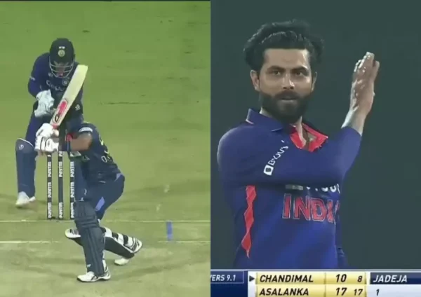 It was a delivery that pitched on length and then turned just enough to beat Chandimal’s outside ege. Ishan Kishan grabbed it safely behind the stumps and took the bails off, catching Chandimal outside the crease in the process. Jadeja also did the Beard celebration from Pushpa after claiming that wicket.
