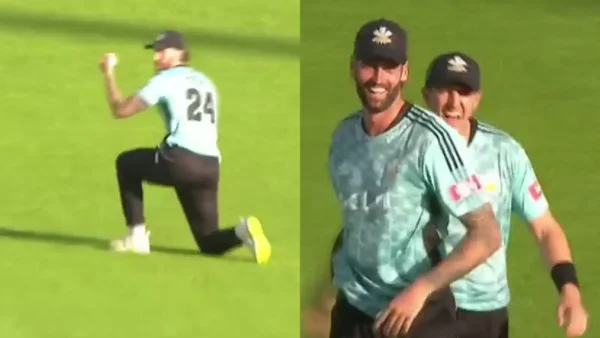 The T20 Blast 2022 has thrown up some spectacular fielding efforts at various junctures of the game, to go with sensational power-hitting and highly skilled bowling. Reece Topley, the left-arm quick England international pulled off a brilliant diving catch during his side Surrey’s comfortable seven-wicket win against Sussex in a South Group fixture at The Oval on Wednesday, June 8.